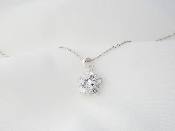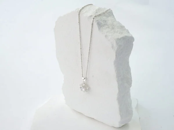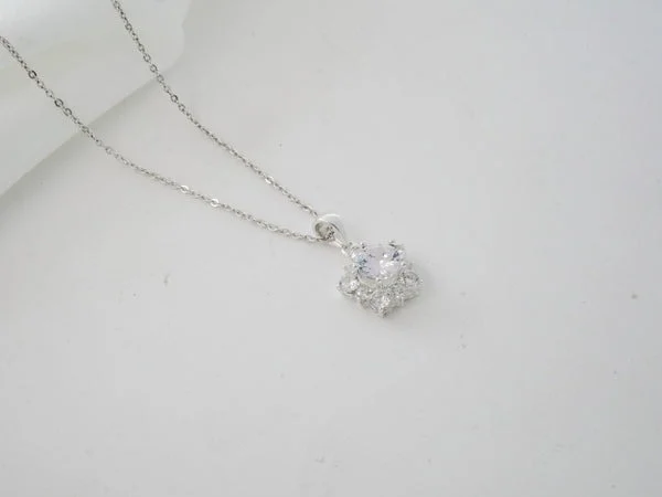 [Zyrono] Stone Flower Sparkling Necklace Silver CDE6128SV Women’s Silver Necklace Free Shipping