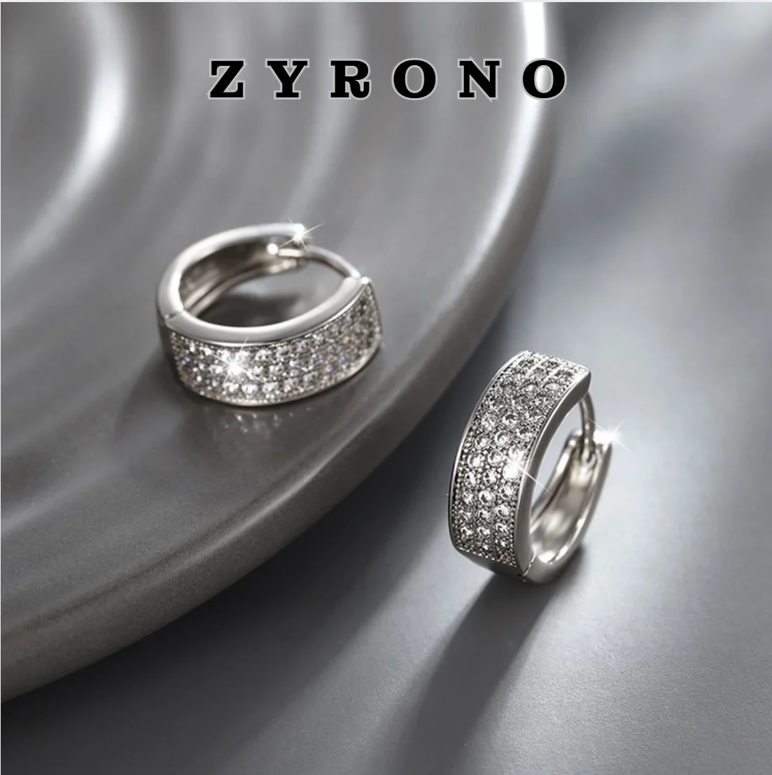 ZYRONO Three-Row Diamond Silver Earrings Free Shipping