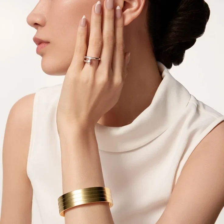 [ZYRONO] ELEGANT WHITE GOLD NAIL-INSPIRED BANGLE WITH SPARKLING CRYSTALS, CLASSIC MODEL photo review