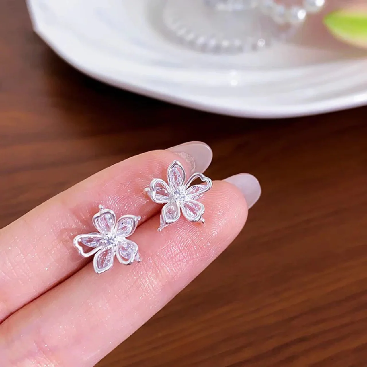 ➤ Product: ZYRONO 925 Silver Flower Earrings with Stones for Women,